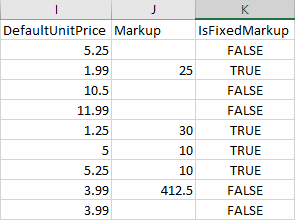 Open the resulting Product Details export file and change the value in the “IsFixedMarkup” column to