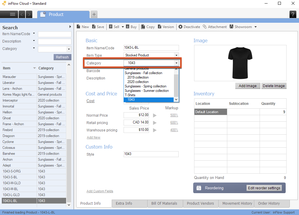 Using the product category field