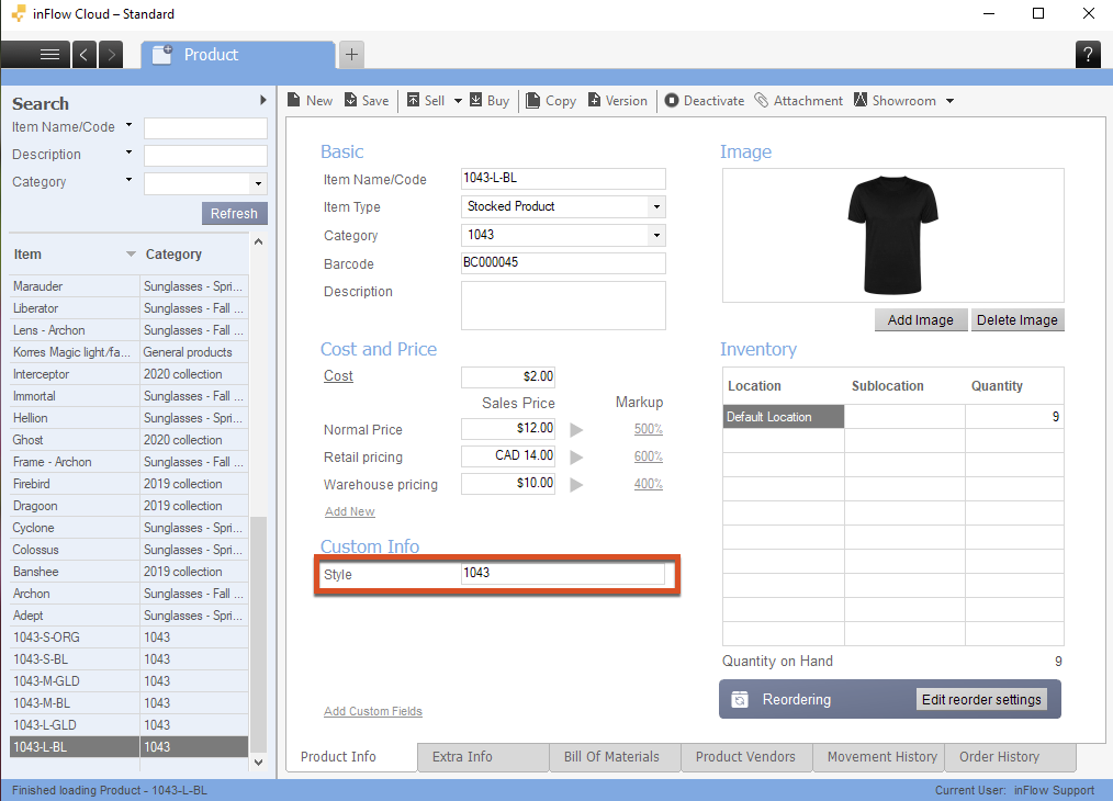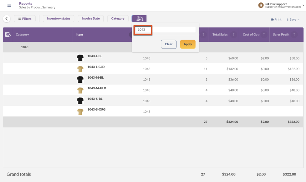 If you’d prefer not to include the style number in your product name, you can track your product variations altogether by using the product category field and/or creating a custom field in your product record instead. You can use these to filter your product tables and reports!