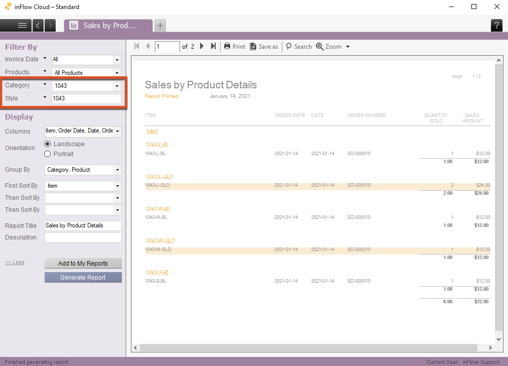 If you’d prefer not to include the style number in your product name, you can track your product variations all together by using the product category field and/or create a custom field in your product record instead. You can use these to filter your product tables and reports!