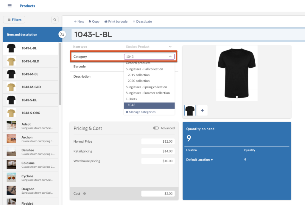 E.g. Your parent category can be “T-shirts” and your subcategory can be your style number “1043”.